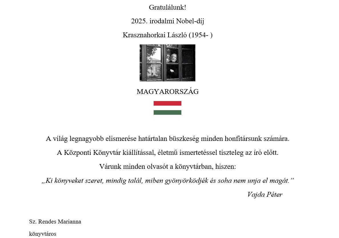 Kellemes időtöltést kívánnak a Központi Könyvtár dolgozói.